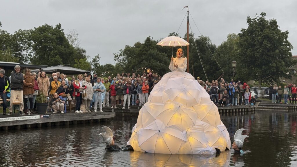 In de schemering verscheen de Drijvende Diva, glijdend over het water in een lichtgevende jurk. Haar aria’s van Mozart, Bellini en Puccini zweefden boven de gracht en vormden een sprookjesachtige afsluiting. Een magisch slotbeeld dat het festival in stilte én bewondering liet eindigen.