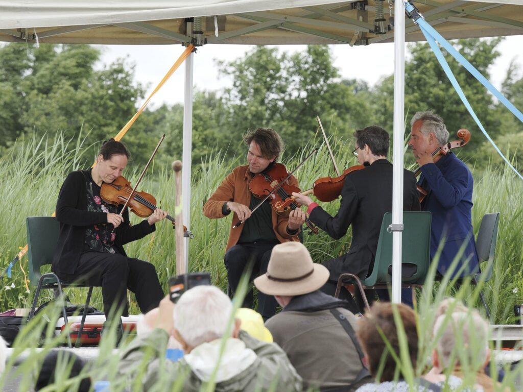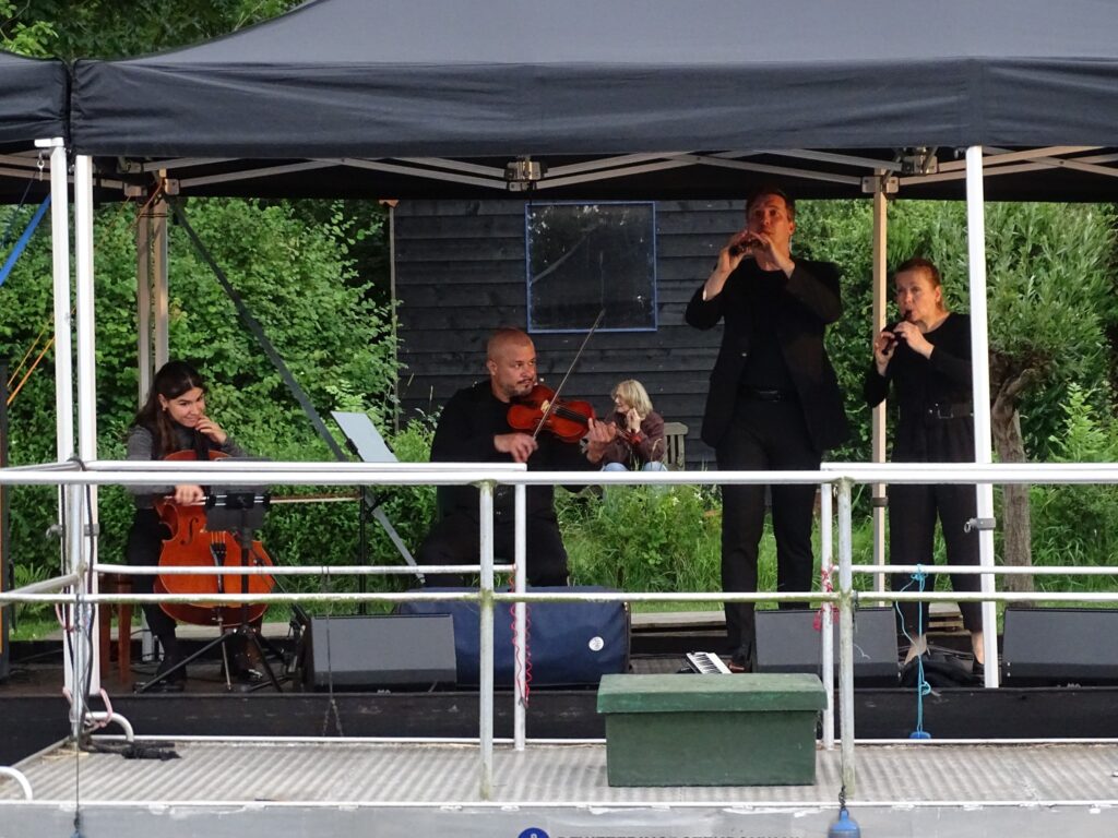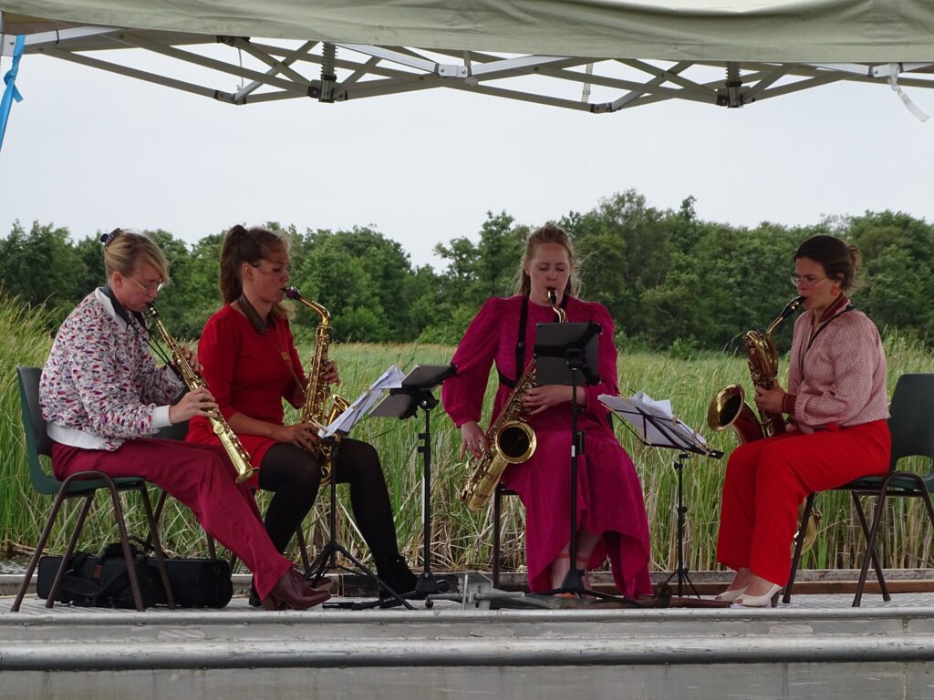 Een bijzonder moment: midden in de rietvelden werd de boot stilgelegd en vulden vier saxofoons het landschap met een mix van Bernstein, Gershwin en hedendaagse muziek. De energie van de musici, gecombineerd met het zacht ruisende riet, maakte dit tot een van de meest geliefde festivalonderdelen.