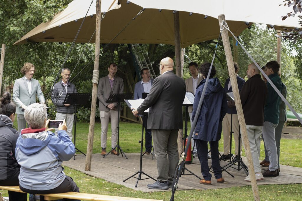 In de tuin van de Vuurvlinder zorgde The Gents voor een verstilde en warme klankwereld. Hun mix van renaissance, romantiek en lichte muziek raakte veel bezoekers. De puurheid van de stemmen kwam prachtig tot zijn recht in de openlucht—een ingetogen maar indrukwekkend optreden.