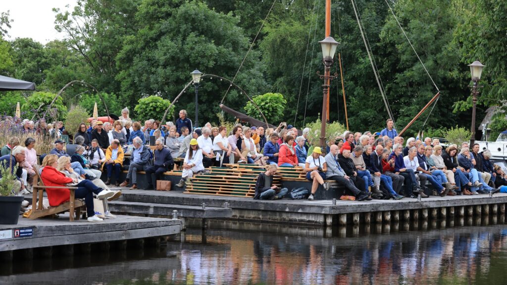 Een bijzonder moment: midden in de rietvelden werd de boot stilgelegd en vulden vier saxofoons het landschap met een mix van Bernstein, Gershwin en hedendaagse muziek. De energie van de musici, gecombineerd met het zacht ruisende riet, maakte dit tot een van de meest geliefde festivalonderdelen.